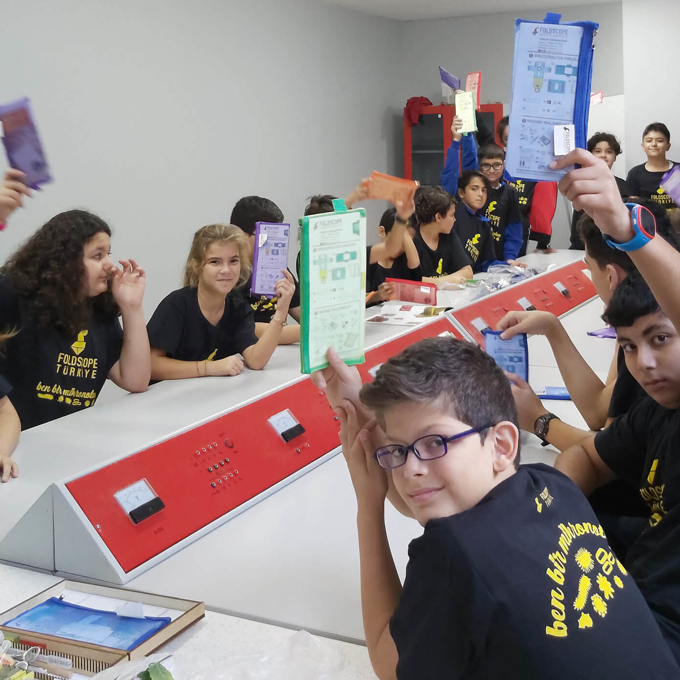 Foldscope Türkiye eğitimcileri ile Çözüm Akademi Ortaokulu öğrencilerinin katılımıyla harika bir etkinlik gerçekleştirildi. Etkinliğe katılanlara foldscope ürünü ve özel “ben bir mikronotum” tişörtü hediye edildi.